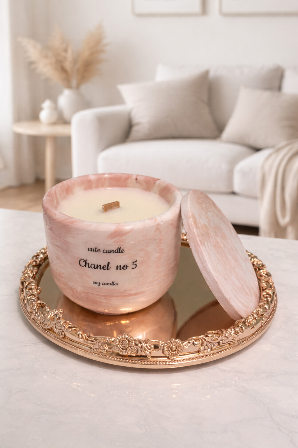 Ένα elegant ροζ κερί σε πολυτελές μαρμάρινο βάζο, που αποπνέει κομψότητα και διαχρονική πολυτέλεια. Η αρωματική του ταυτότητα παντρεύει τη διαχρονική φινέτσα του Chanel N°5 με απαλό White Musk, γλυκές νότες amaretto & almond και πούδρα, δημιουργώντας μια αίσθηση καθαριότητας, ζεστασιάς και υψηλής αισθητικής. Ιδανικό για έναν κομψό χώρο ή ως δώρο που ξεχωρίζει για το στυλ και τη λεπτομέρειά του.