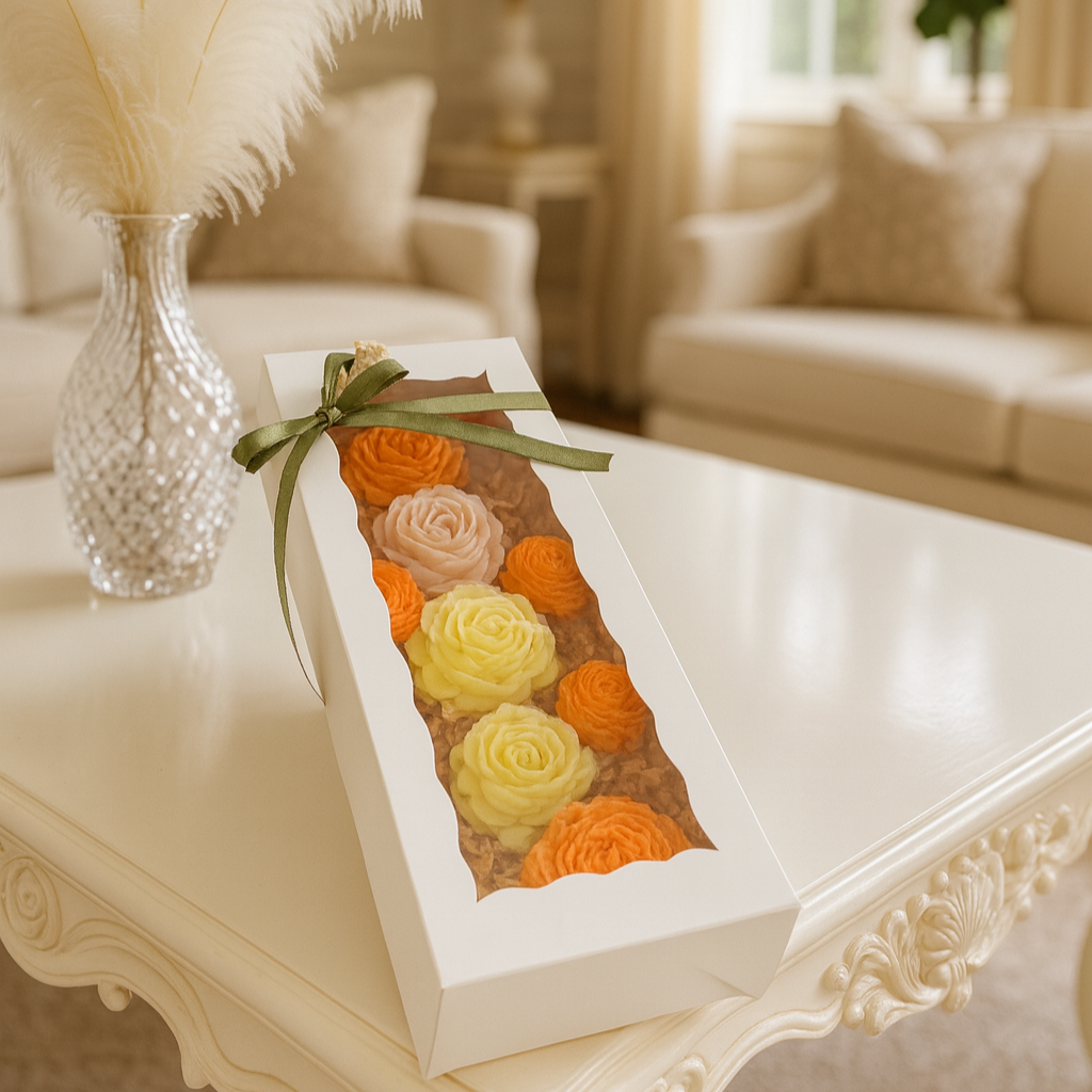 9 τεμάχια σε σχήμα παιώνιας, χειροποίητα με μεράκι, που αναδύουν τις πιο ζεστές φθινοπωρινές νότες: