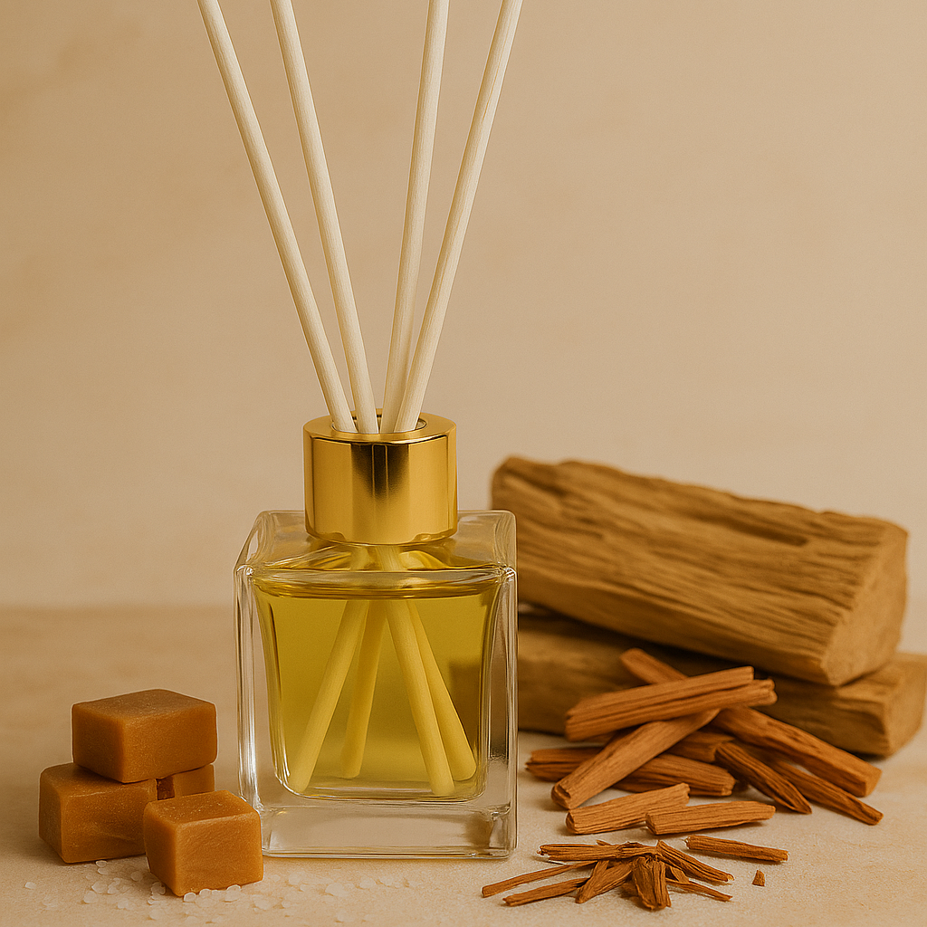 Ένα κομψό και θερμό άρωμα που συνδυάζει τη γλυκα με τις βαθιές ξυλώδεις νότες του σανδαλόξυλου. Το “Velvet Sandal” αγκαλιάζει το χώρο με μια αίσθηση άνεσης και φινέτσας, ιδανικό για cozy βραδιές ή για να προσθέσετε χαρακτήρα σε κάθε γωνιά του σπιτιού σας